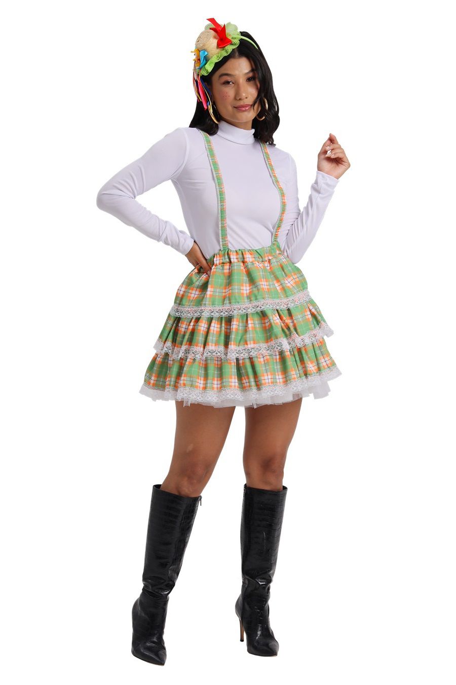 Celebre as tradições das festas juninas com a elegante Saia Xadrez Feminina para Festa Junina, acompanhada da Salopete Verde!